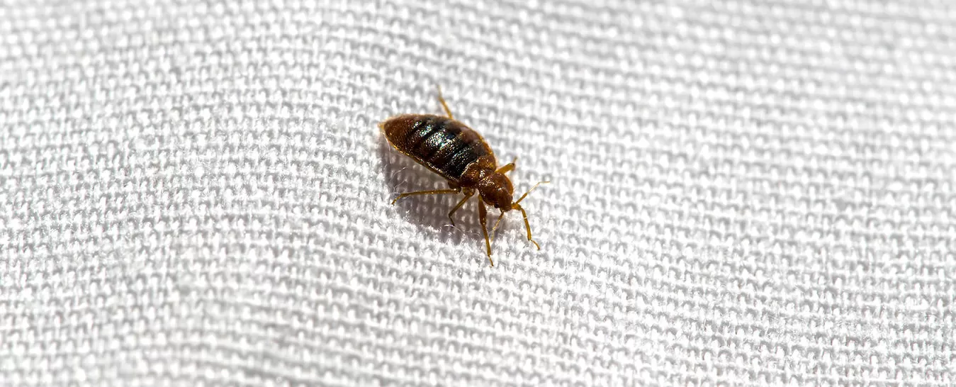 Adult bed bugs are the size of an apple seed, red-brown in color, and have a flattened body. They have six legs and two antennae. They are visible to the naked eye but are able to hide in small crevices and seams. Bed bugs are known for leaving blood stains on sheets and mattresses, as well as fecal stains, which are small dark spots that look like small ink dots.